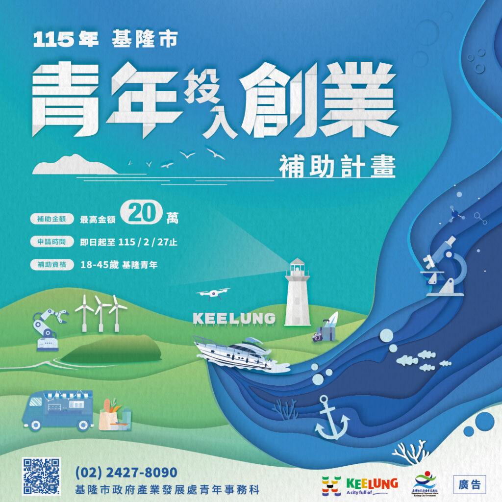 115年度 「基隆市青年投入創業補助計畫」 自即日起至2月27日受理申請囉!!