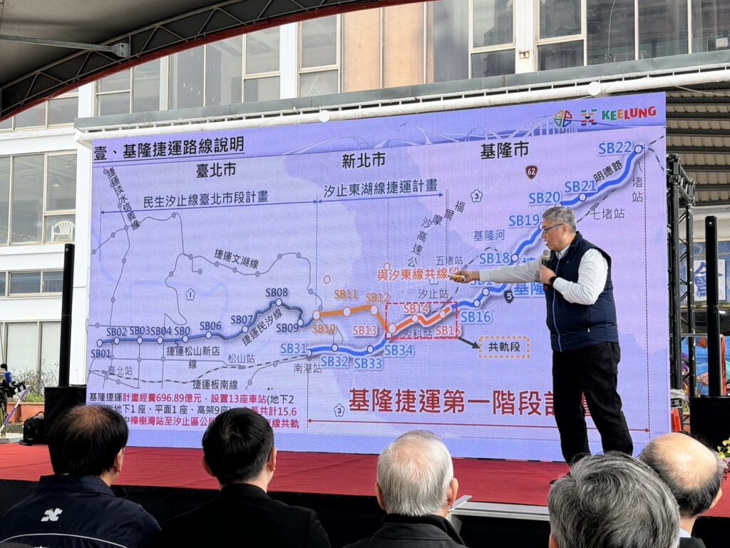 新北市長侯友宜表示,基隆捷運為中運量軌道系統,全長約15.6公里,設置13座車站,計畫經費約696.89億元,路線自基隆八堵出發,沿基隆河谷廊帶進入市區,經南陽大橋後銜接至臺北南港。行政院於2024年初核定綜合規劃後,新北市即承擔建設與營運責任,並啟動基本設計與工程推動作業。為縮短行政程序所需時間,新北市採取「細設先行、機電後擴、先期工程率先施工、地下段統包工程先招標」等四大優先策略,讓工程能同步推進。